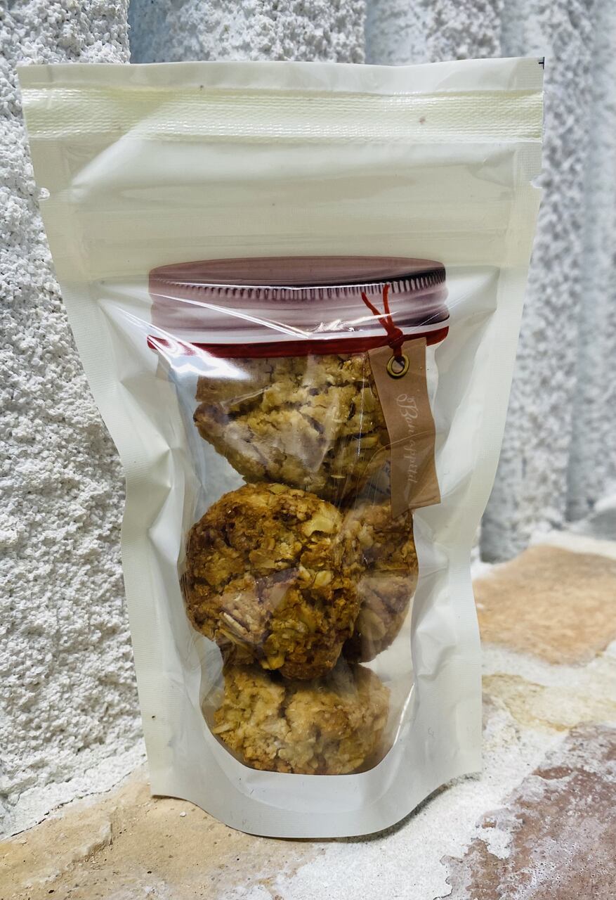 原料に手作りみそを使ってます。しかも麹が通常の5倍の量!(余談ですが、麹をモミモミしているだけで手がすべすべになりました) オートミールと合わせてかみ応えに食べ応えも抜群!せっかくなので米粉とココナッツオイルを使って健康に気を配る人にもオススメのお菓子になりました。和風テイストです。4枚入り。