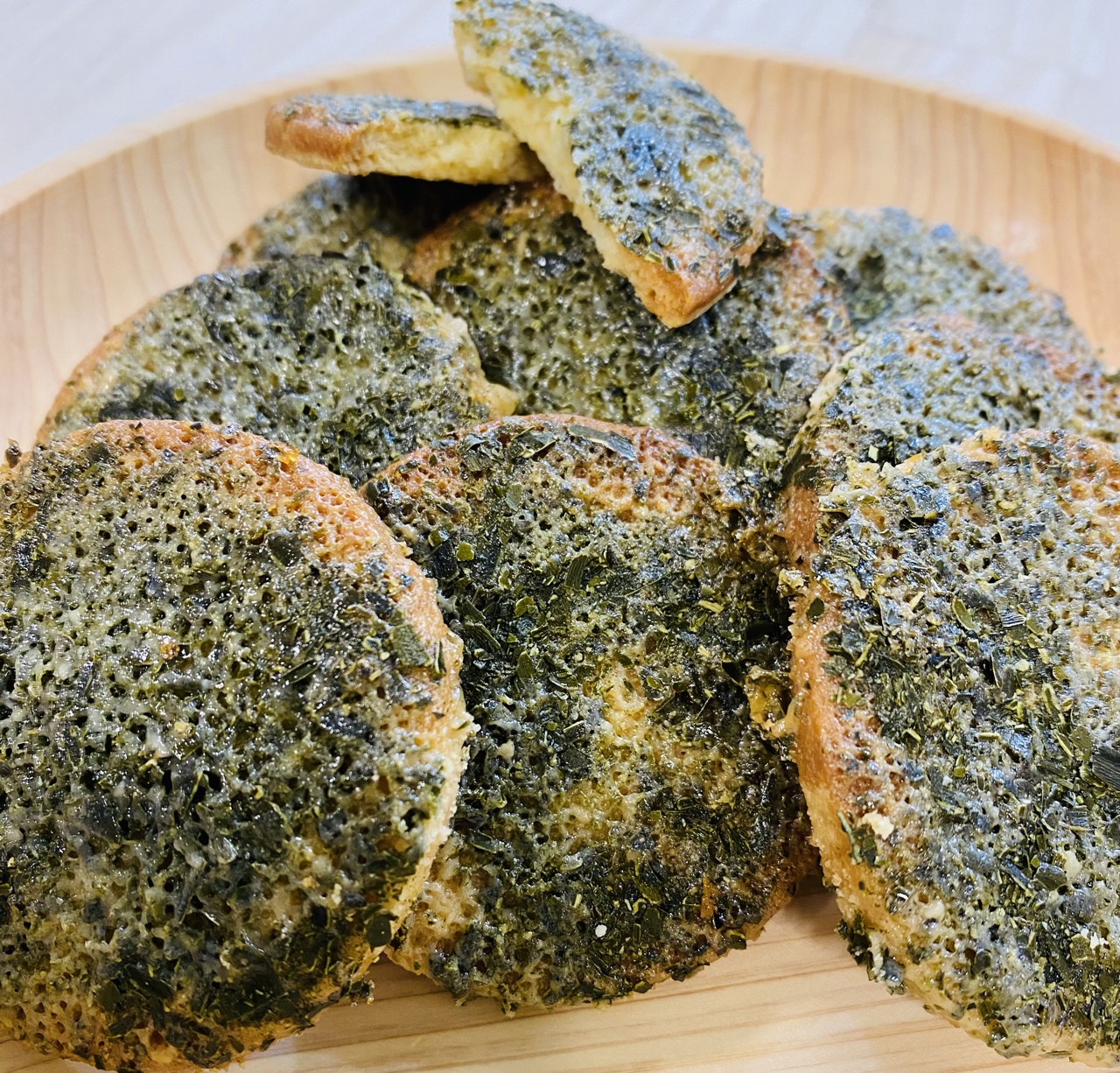フロランタンという焼き菓子はご存じですか?アーモンドスライスがたっぷりのったキャラメルクッキーです。そのオマージュとでもいいましょうか、アーモンドじゃなくて砕いた昆布をのせました。パリッとした昆布の食感にときどきくる塩味。もう神クッキー!と自画自賛です。甘塩っぱいとはまさにこのこと。1枚では足りない、もうちょっと食べたいとなるのを想定して2枚入りです。